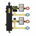 Układ ze sprzęgłem hydraulicznym DN25 - 1 obieg z zaworem obrotowym i siłownikiem, 1 obieg z zaworem termostatycznym